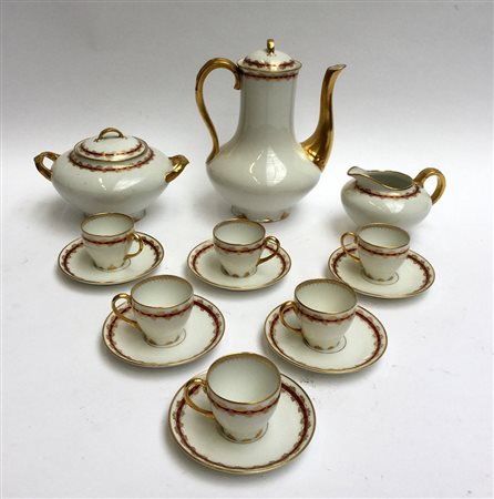 Manifattura francese, servizio da caffè in porcellana decorato a dorature su...