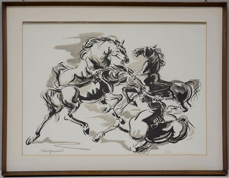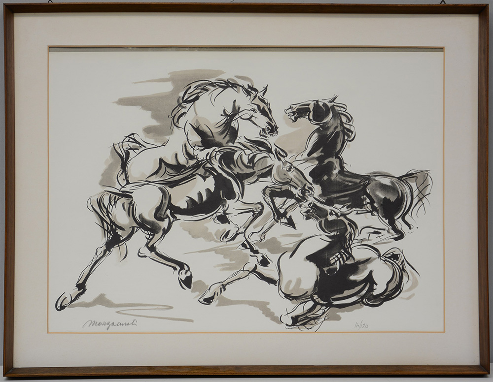 Renato Marino Mazzacurati (Galliera 1907 - Parma 1969)"Cavalli" litografia...