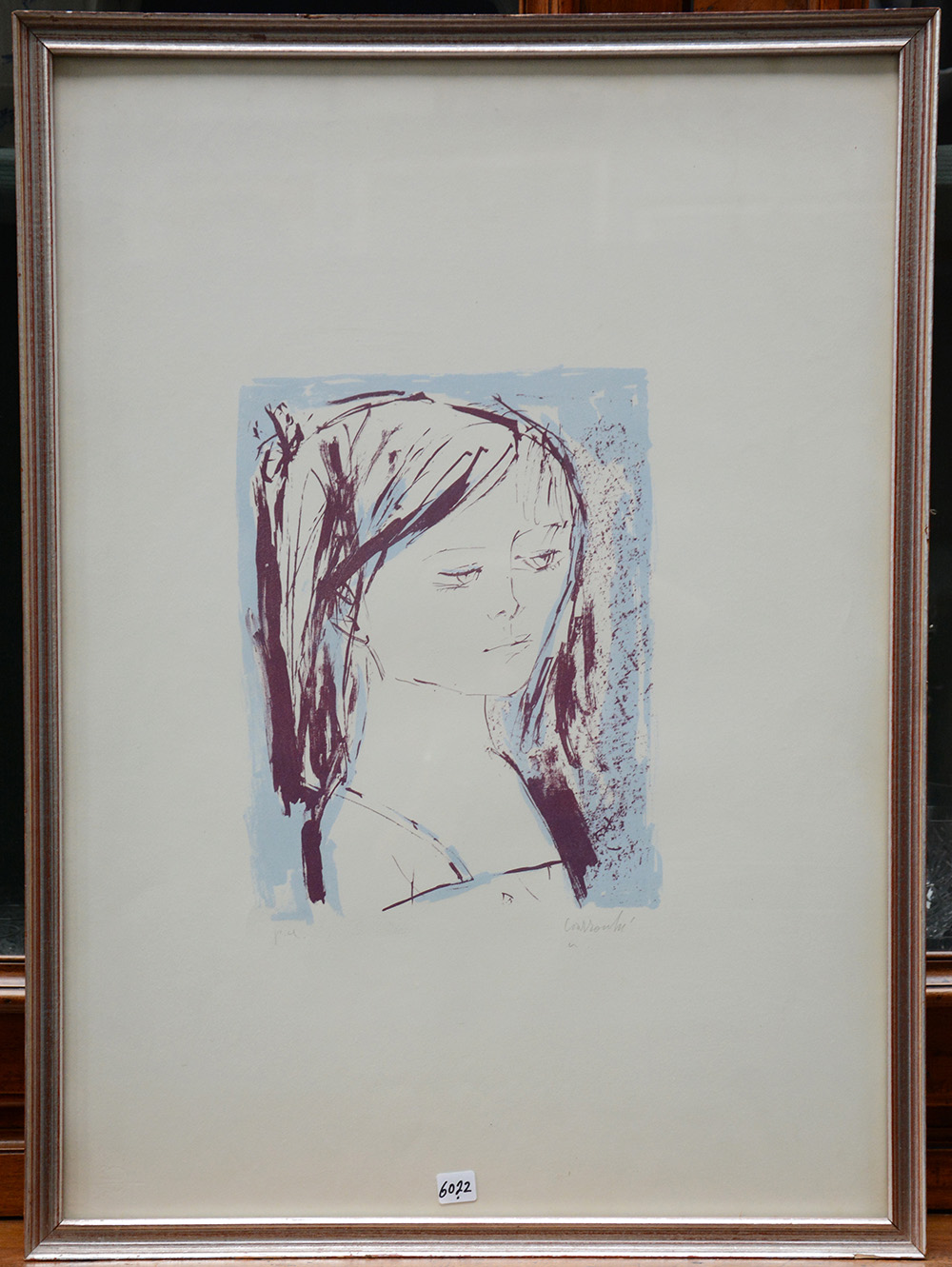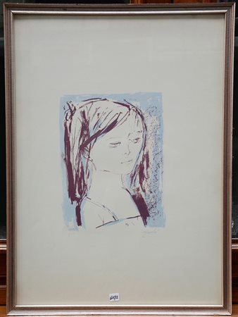 "Ritratto femminile" litografia (cm 70x50) firmata in basso a destra, p. a. , in cornice