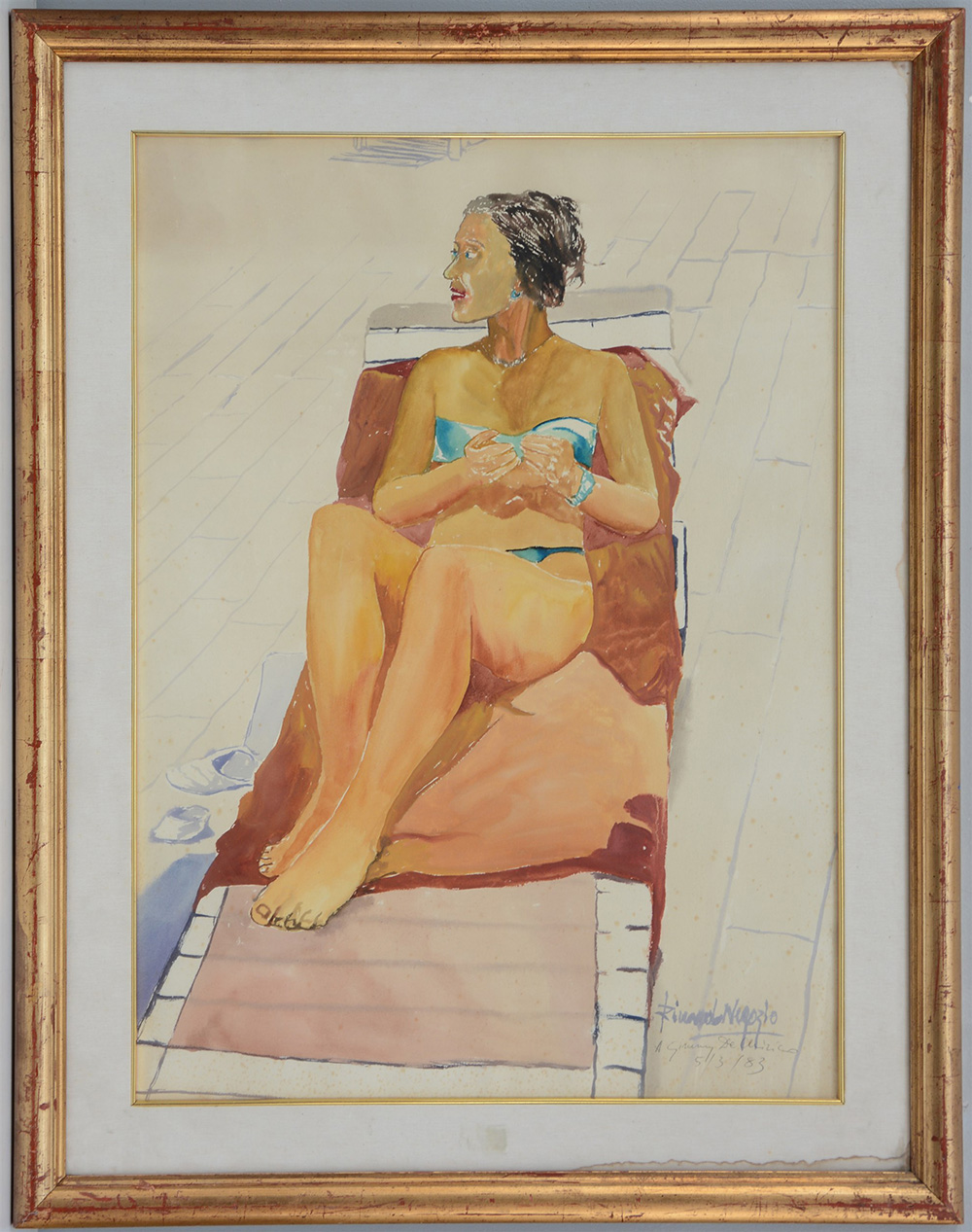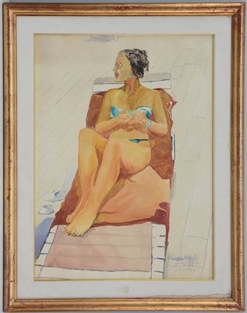 Firma indecifrata, "Prendendo il sole" tecnica mista su cartoncino (cm 77x56)...