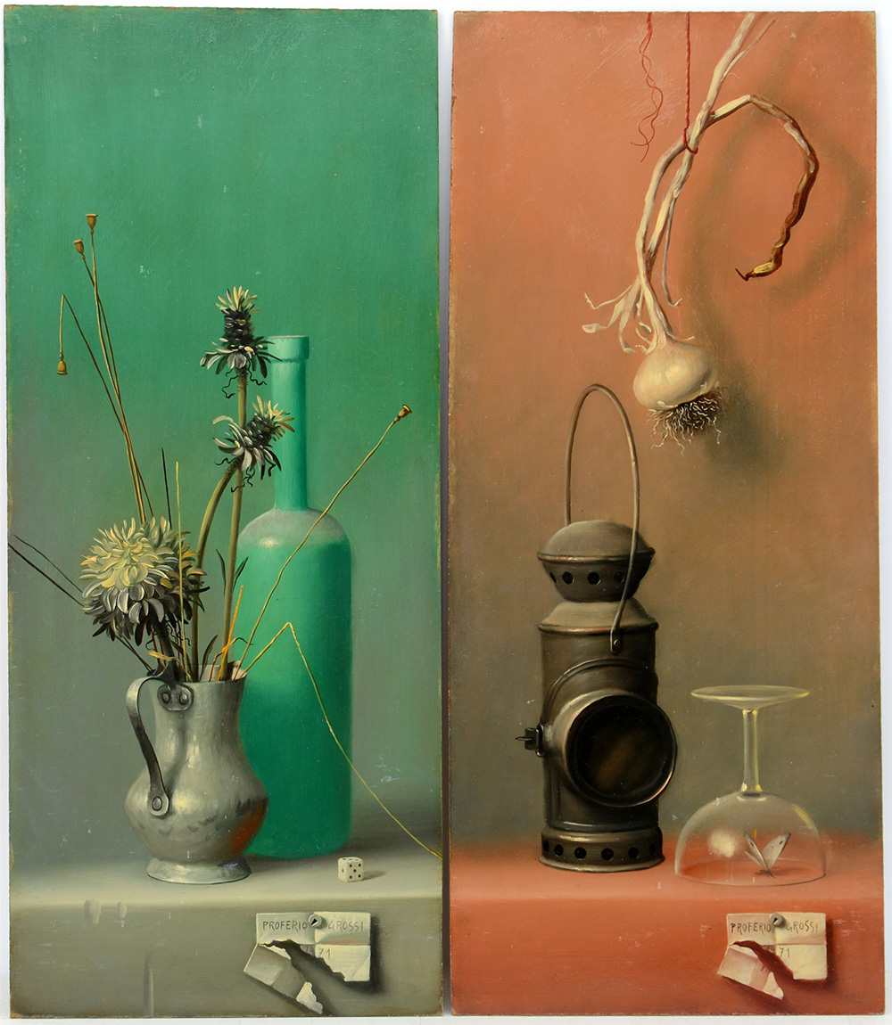 Proferio Grossi (Vignale 1923 - Parma 2000)coppia di olii su masonite...