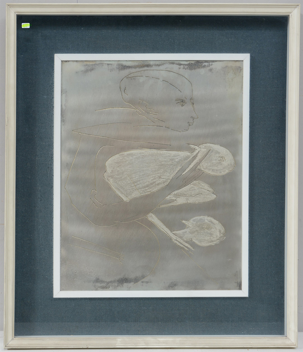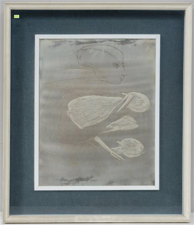 "Pastore" multiplo in argento (cm 40x50) ed. 11/50. Etichetta al retro dello Studio D'Arte La Mole, Torino firmata dall'artista. In cornice (difetti)