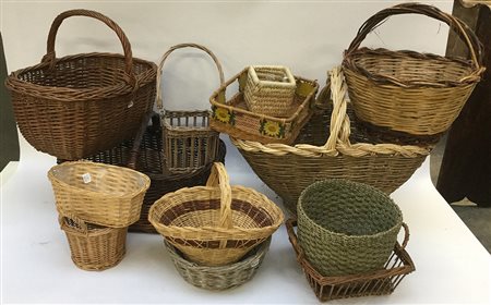 Lotto composto da tredici ceste varie di diversa fattura e dimensioni