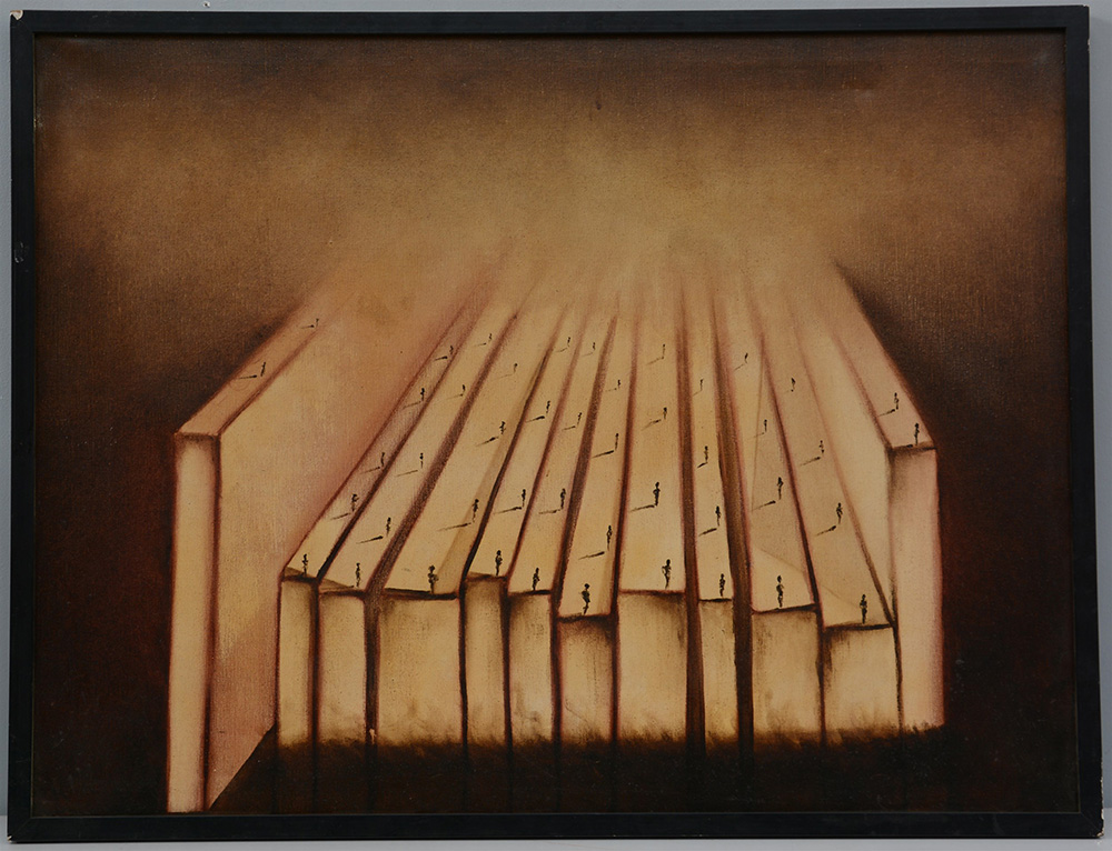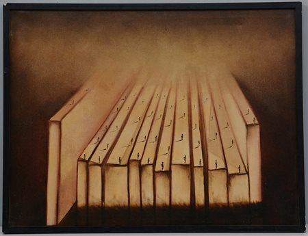 Ignoto, "Composizione" olio su tela (cm 76x100) in cornice (lievi difetti)