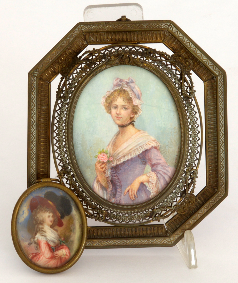 Lotto composto da due miniature di diverse epoche in cornici (difetti)