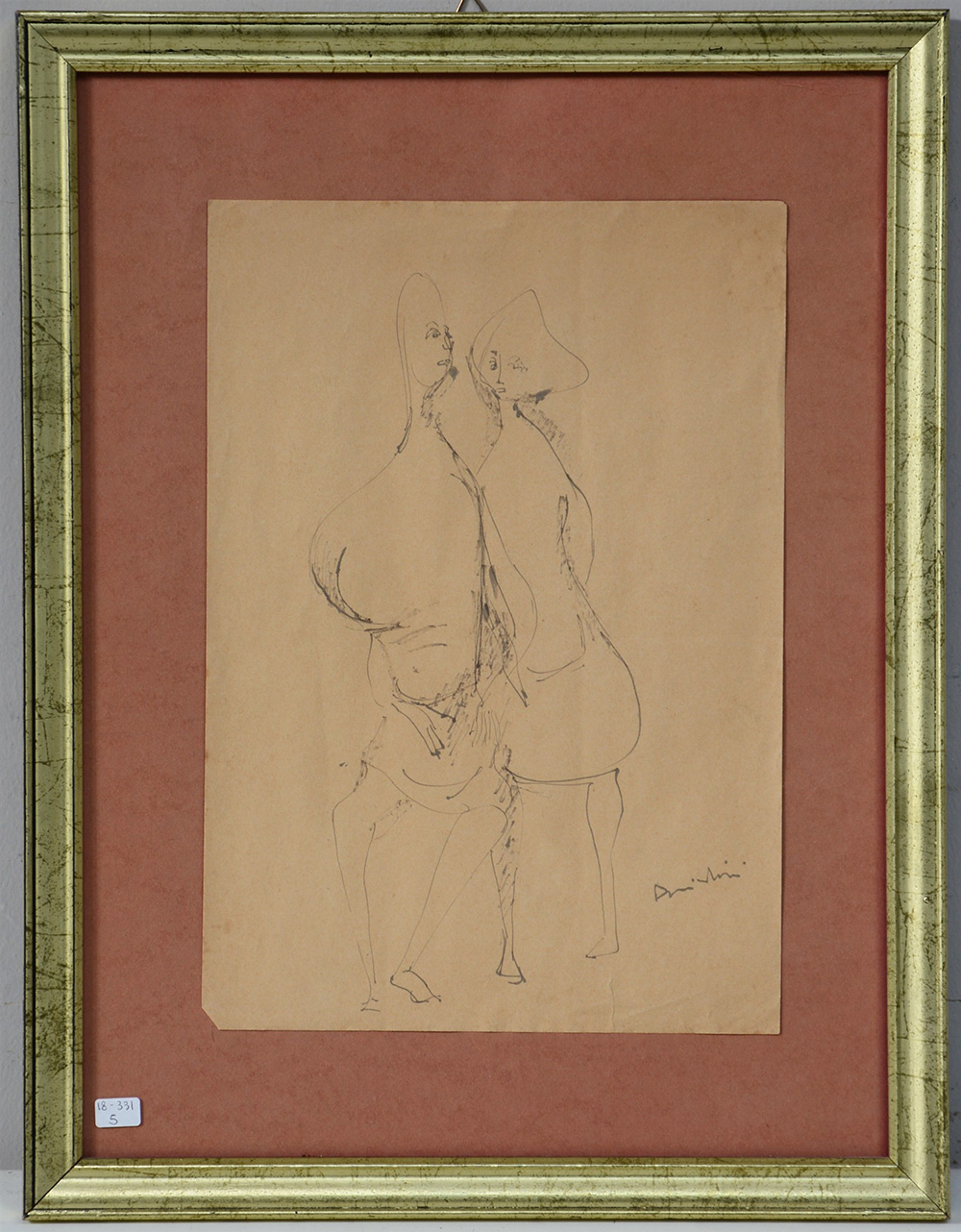 Firma indecifrata, "Figure" disegno ad inchiostro su carta (cm 30x21) firmato in basso a destra