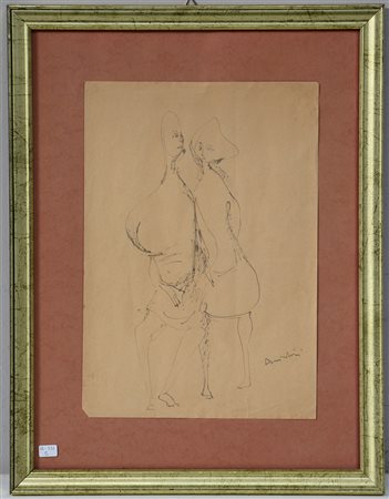 Firma indecifrata, "Figure" disegno ad inchiostro su carta (cm 30x21) firmato...