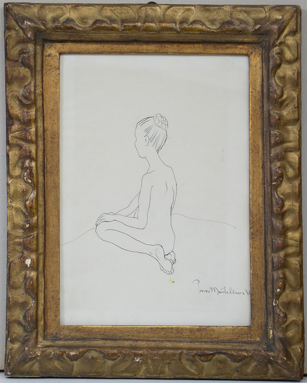 Pina Martellini (Torino 1916)"Ragazza nuda"disegno a tratto (cm 32x22,5),...