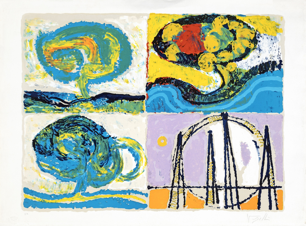 Antonio Vangelli COMPOSIZIONE Composizione, Serigrafia, cm 60x81. Firma e tiratura sul fronte "Vangelli P.A.". Timbro Antonio Vangelli.