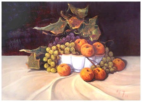 ROBERTO PISANI Livorno 1938 Natura morta 2003 Olio su tela 50 x 70. Firma e data i b. a d.; sul verso firme, data, titolo e scritte dell’artista. B.A.: 90