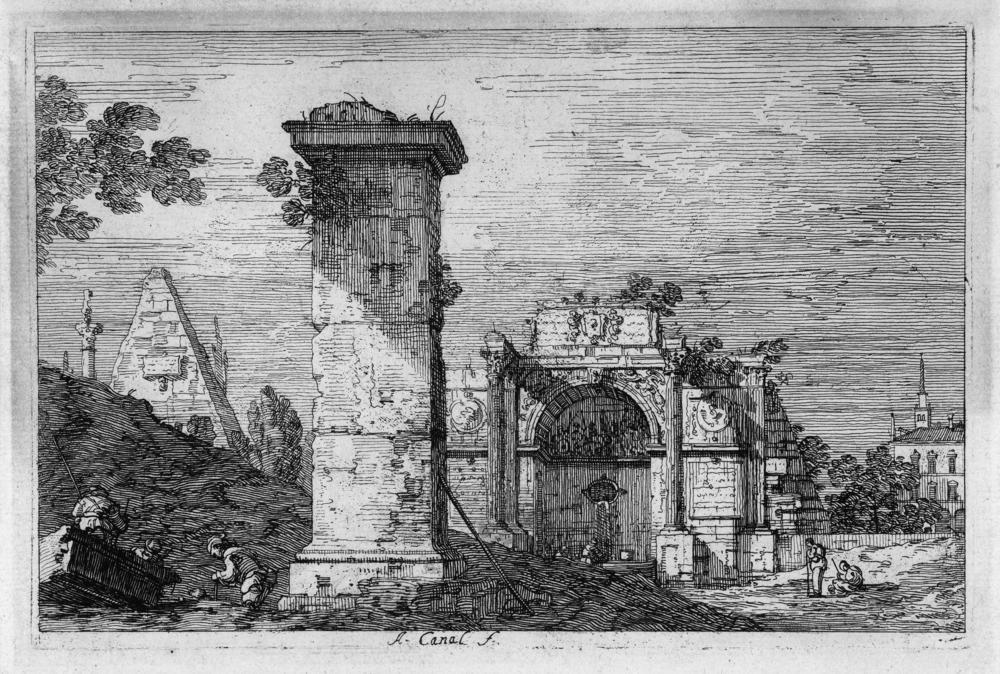 Canal Antonio PAESAGGIO CON UN PILASTRO E ROVINE CLASSICHE Acquaforte. mm...