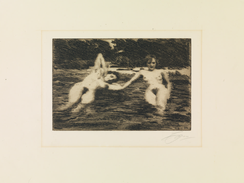 Zorn Anders WATER NYMPHS – NAJADER. 1918 Acquaforte. mm 157x238. Foglio: mm 380x512. Hjert, 288. Asplund, 282. Lidbeck, 282. Firmata a matita e datata “1918” sulla lastra. Stato unico. Ottima prova stampata con plate-tone su carta “Van Gelder”. Grandi margini intonsi, traccia di ossidazione da vecchio passe-partout.