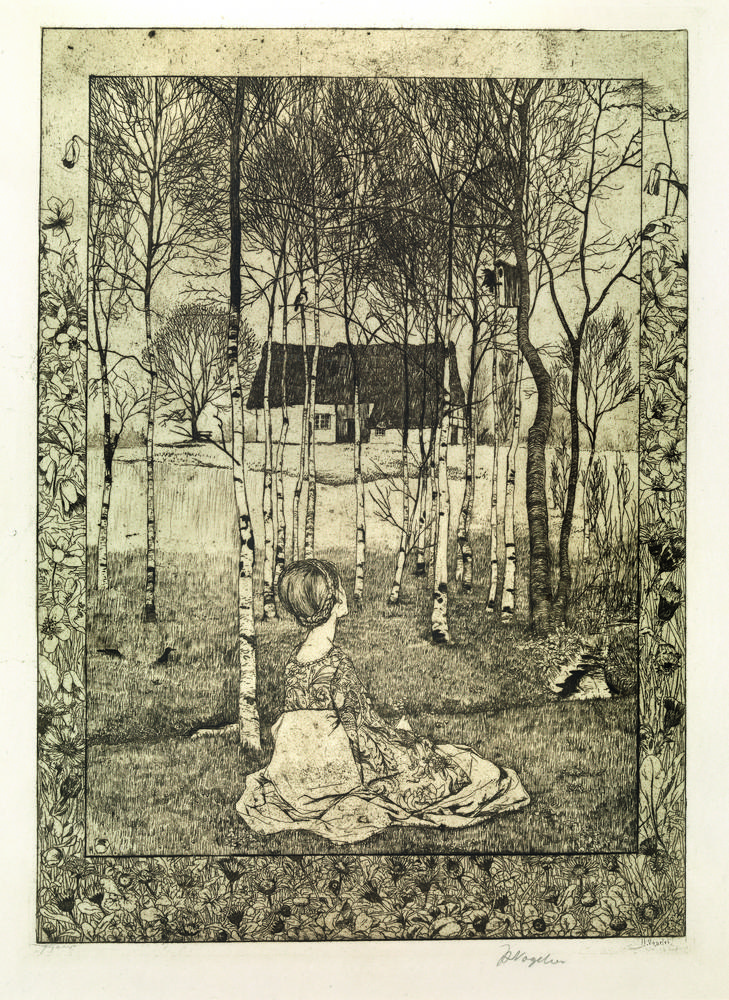 Vogeler Heinrich FRÜHLING. 1896 Acquaforte. mm 349x249. Foglio: mm 425x306....