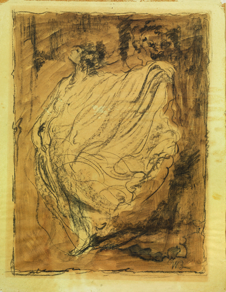 Boccioni Umberto DANZATRICE Gessetto nero e acquerello bruno su carta Japon....