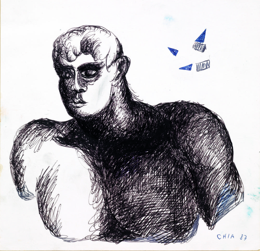 Sandro Chia SENZA TITOLO. 1983 Penna biro nera e blu su carta. mm 170x170. Firmato e datato Provenienza: Gian Enzo Sperone, Roma. Collezione privata, Perugia.