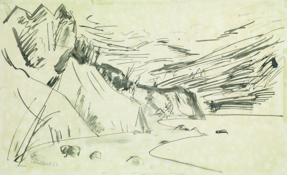 Heckel Erich PAESAGGIO. 1913 Penna e inchiostro nero su carta. mm 325x530....