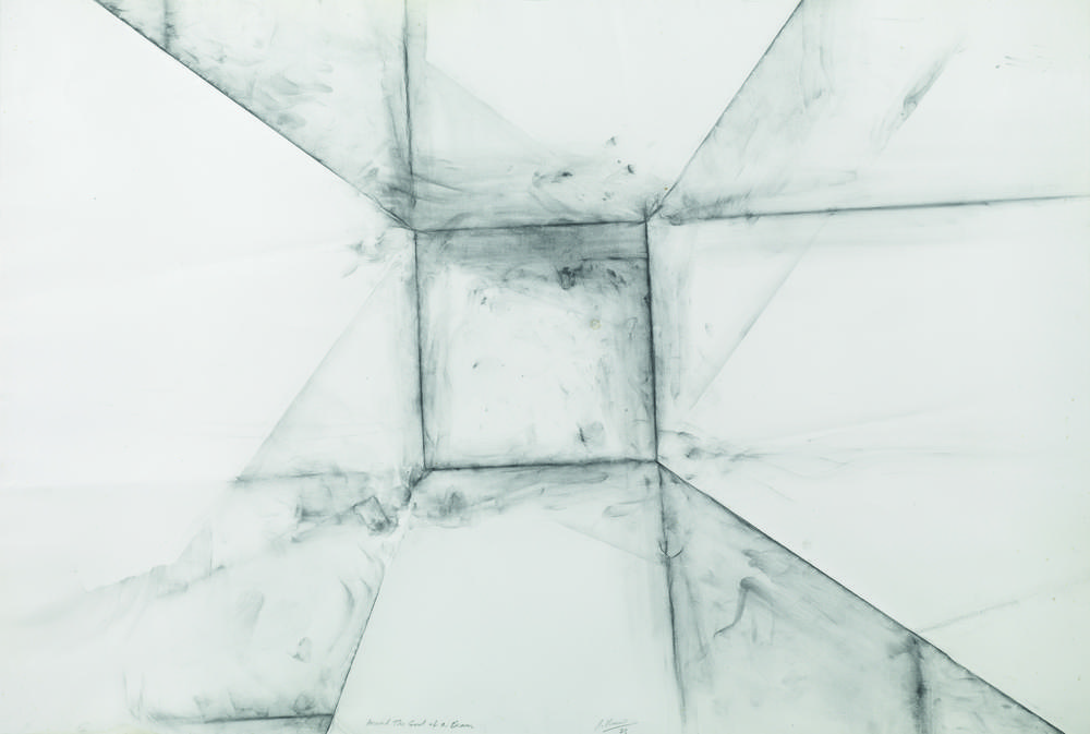 Morris Robert AROUND THE END OF A BEAM. 1973 Grafite su carta piegata. mm...