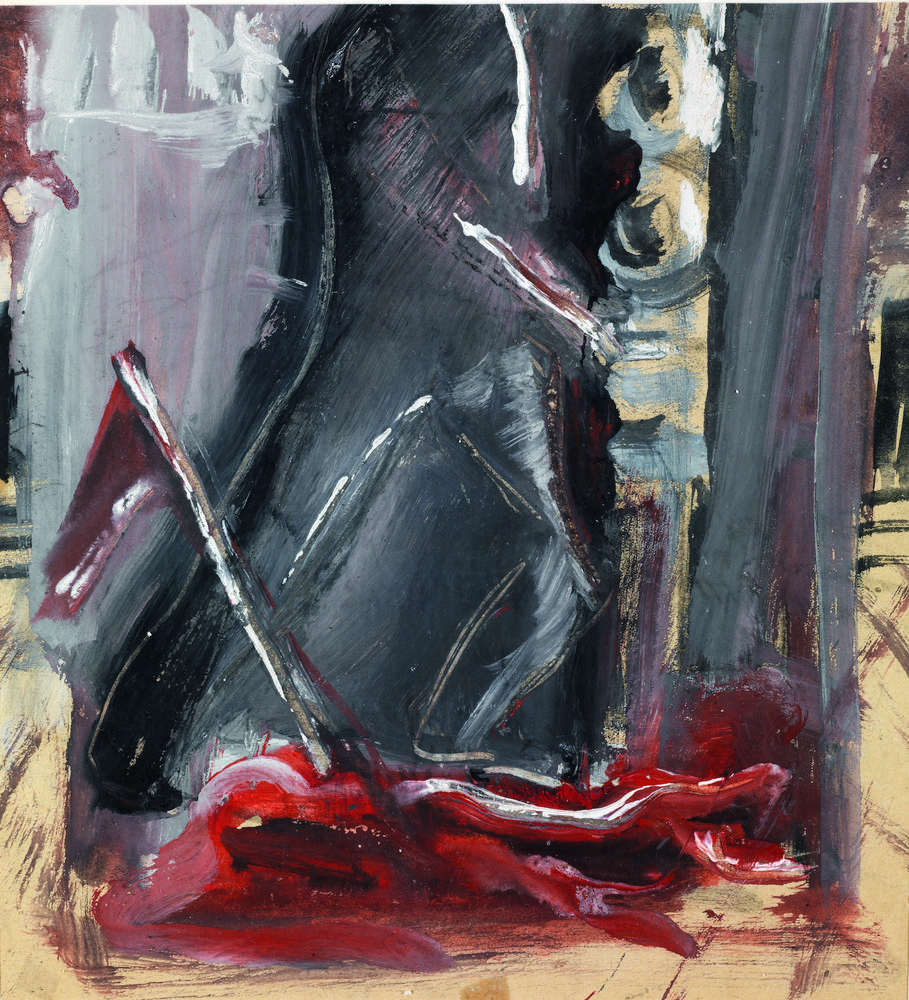 Sironi Mario SCENA CON UOMO A TERRA TRAFITTO DA UNA LANCIA Inchiostro nero e tempera policroma su carta. mm 259x238. Databile da Meloni alla fine degli Anni Trenta, l’opera e` da inquadrare nella produzione delle illustrazioni per "La Rivista Illustrata del Popolo d’Italia". Autentica su fotografia di Francesco Meloni datata "Milano 4 Novembre 1989". Provenienza: Collezione privata, Roma