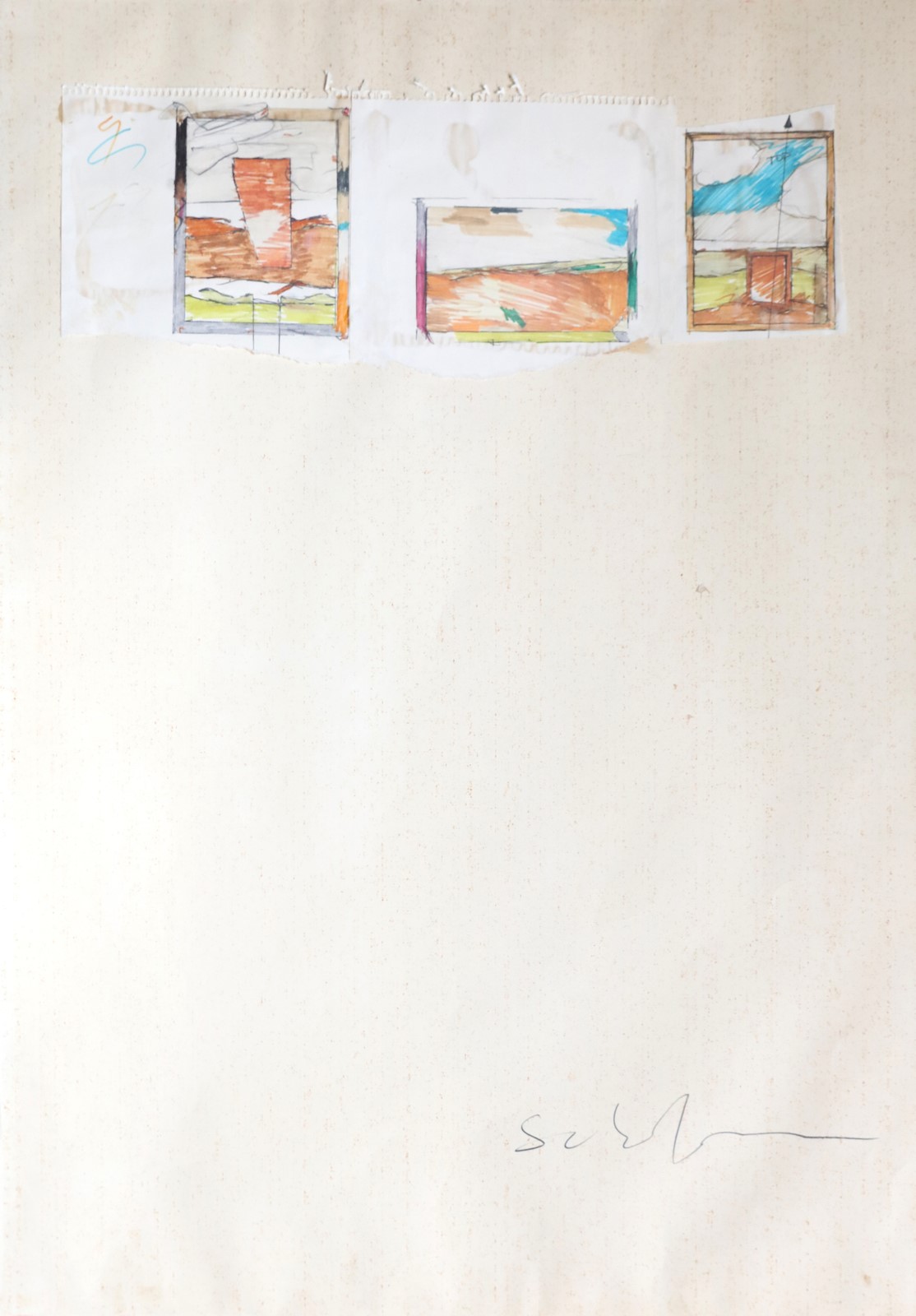 SCHIFANO MARIO (1934 - 1998) Senza titolo. Tecnica mista su carta. Cm 70,00 x 100,00. Firma a matita in basso. Opera archiviata presso l'Archivio Mario Schifano, Roma come da documentazione allegata all'opera riportante il relativo numero d'inventario. Cornice presente