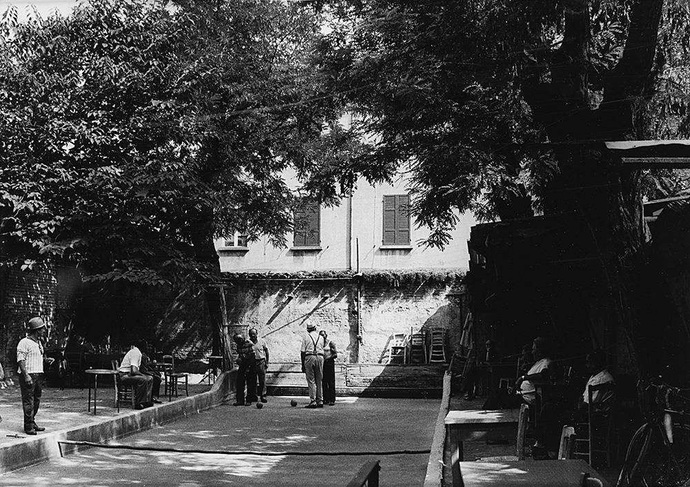 Paolo Monti (1908 - 1982) Gioco delle bocce nel centro storico di Forl“, 1971 Stampa vintage alla gelatina ai sali d'argento cm 21,7 x 30,4 Timbro del fotografo al verso