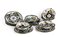 Roma, 1846 - 1931 Servizio da tè composto da sei coppette e sei piattini decorati col motivo dell’occhio di pavone Ceramica dipinta, coppetta: 4,5 x 12,3 cm ; piattino: d. 13,8 cm ; Sotto la base alcune tazzine e alcuni piattini riportano le iniziali dell’artista: TC
