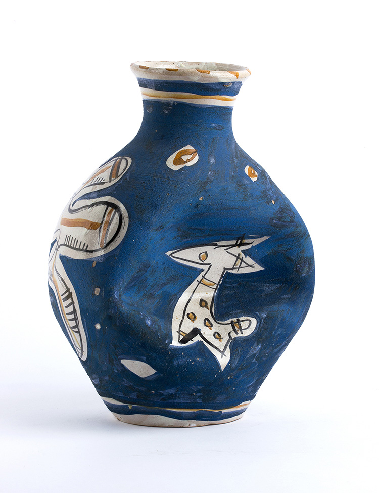 PROCIDA - VIETRI Vaso con elementi zoomorfi e fitomorfi Ceramica dipinta, h. 25 cm Firma sotto la base: PROCIDA