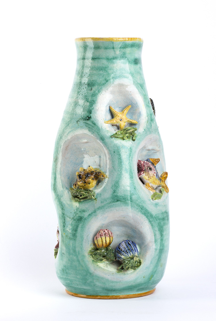 AVALLONE - VIETRI Vaso con elementi marini in rilievo Ceramica dipinta, h. 34...