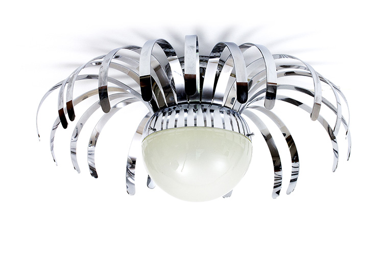 MANIFATTURA ITALIANA Lampada “ragno” in lamelle di metallo cromato e...
