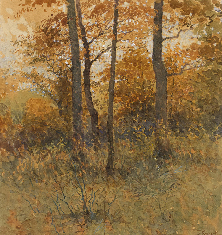 Firenze, 1869 - Fauglia, 1948 Studio di bosco Acquarello su carta, 37,7 x 36 cm circa Firma in basso a destra: G. Kienerk