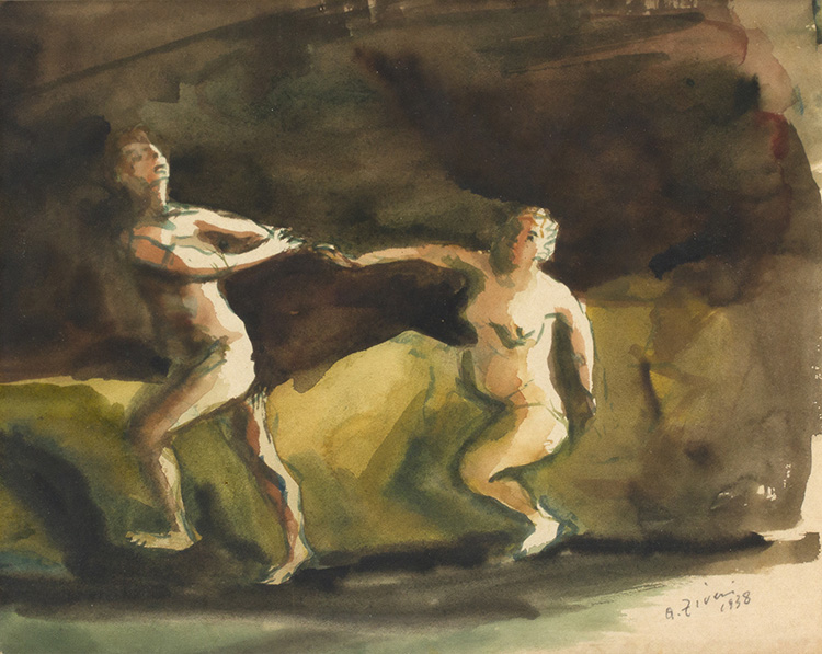 Roma, 1908 - 1990 Giuseppe e la moglie di Putifarre, 1938 Acquarello su carta, 25 x 30 cm circa Firma e data in basso a destra: A. Ziveri 1938