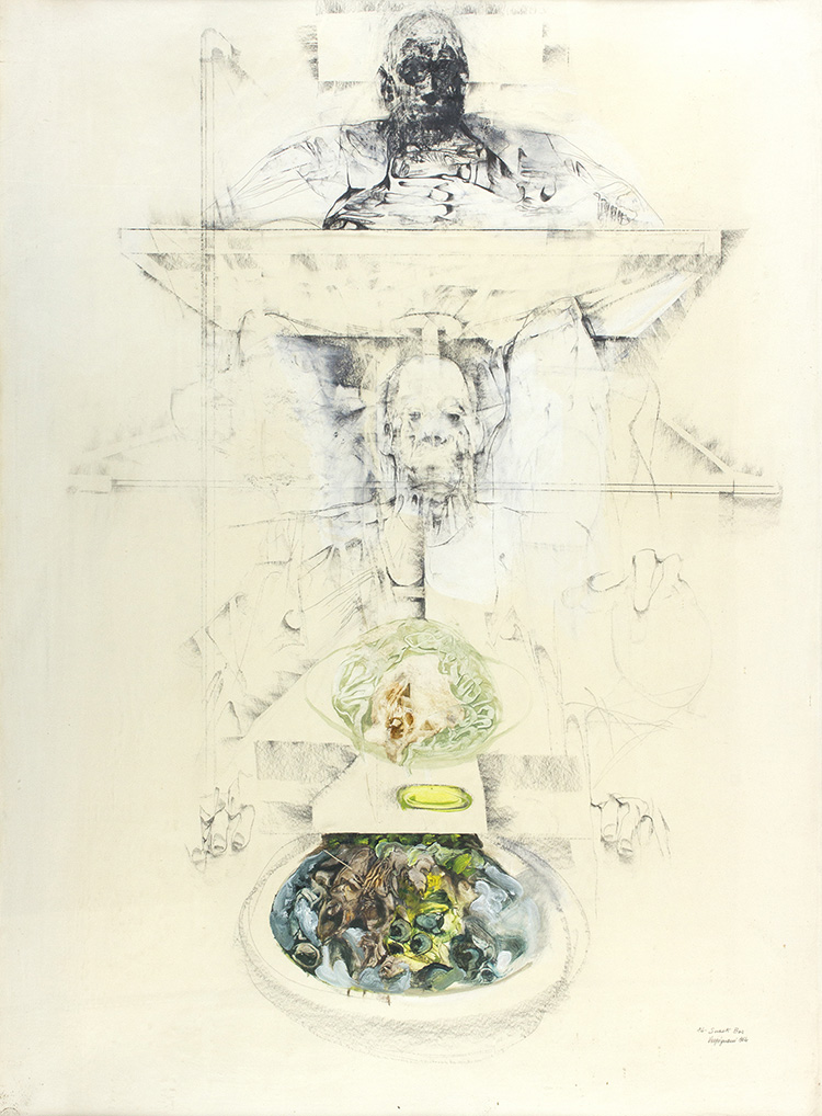 Snack bar, 1964 Tecnica mista su carta applicata su tela, 101 x 73 cm Titolo, firma e data in basso a destra: 84-Snack bar, Vespignani 1964