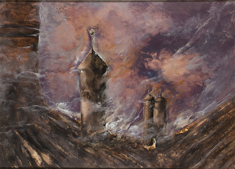 Castenaso, 1925 - Siena, 2016 Tetti di Roma, 1980 Olio su cartoncino, 75 x 100 cm Firma e data in basso al centro: Vacchi, 1980