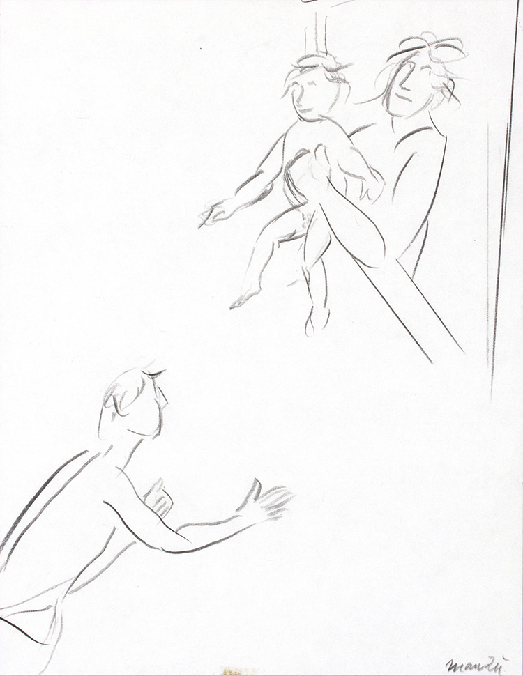 GIACOMO MANZÙBergamo, 1908 - Roma, 1991 La famiglia Pastello nero su carta,...
