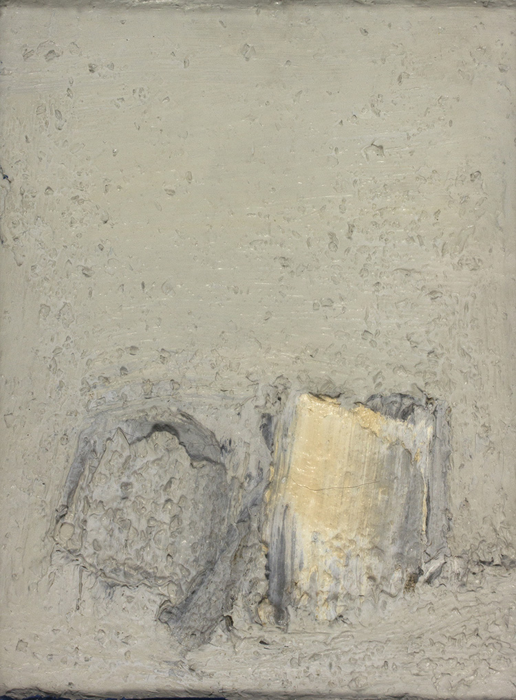 Modena, 1911 - Parma, 1994 Natura morta bianca, 1966 Olio su tela, 24 x 17,5 cm Firma, data e titolo al retro: Mattioli 66, Natura morta bianca