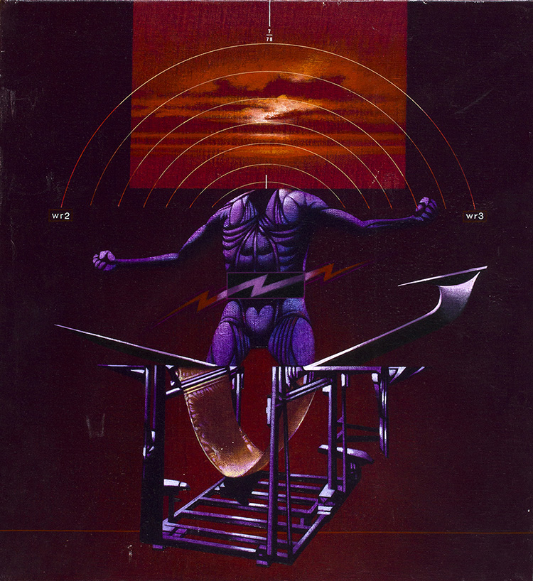 Torino, 1938 Studio per “L’Idolo” Acrilico su tela, 54 x 50 cm Titolo, dedica, firma, data al retro: Studio per l’idolo, “All’amico Dario in ricordo di”, Sergio Sarri, 981