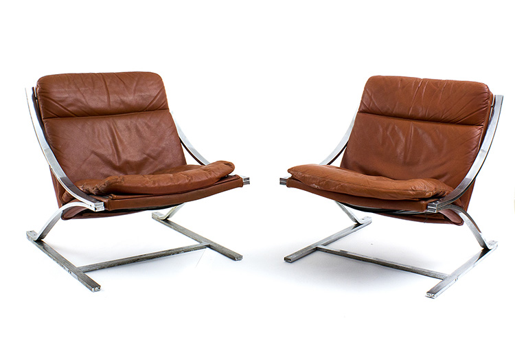 Lotto 221 | PAUL TUTTLE - STRÄSSLE, SVIZZERA Coppia di poltrone “Zeta”, Anni ‘60 Pelle e...