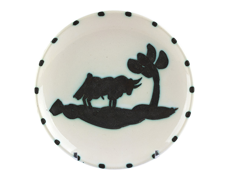 Malaga, 1881 - Mougins, 1973 Toro, 1951-52 Piatto in terracotta maiolicata, d. 19,5 cm Marchio impresso sotto la base: MADOURA, EDITION PICASSO