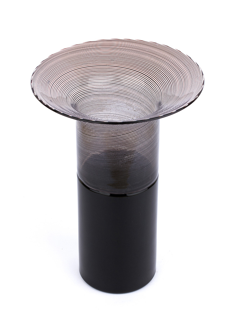 TAPIO WIRKKALA - VENINI Vaso a fungo con decoro astratto Vetro, h. 26 cm ; d. 18 cm Firma e sigla sotto la base: Venini Italia TM PUBBLICAZIONI Franco Deboni, “I Vetri Venini. Catalogo 1921-2007”, U. Allemandi, Torino