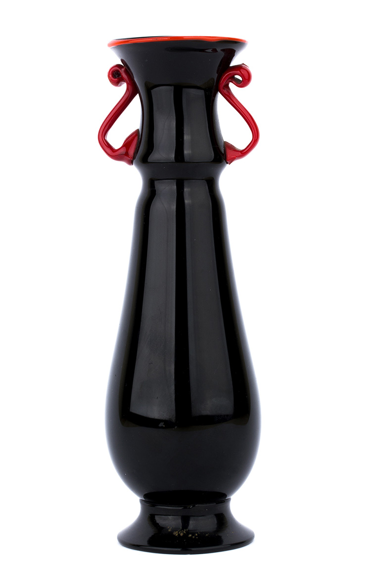 NASONMORETTI - MURANO (attr.) Vaso in vetro nero con applicazioni e anse in pasta rossa, Anni ‘30 Vetro, h. 21 cm