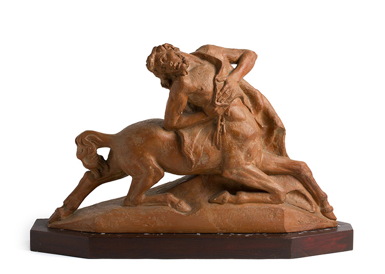 San Nicomede, 1889 - Milano, 1973 Centauro ferito, 1930 circa Scultura in terracotta, 41 x 65 x 15 cm circa Firma incisa in basso a destra: A. Bazzoni