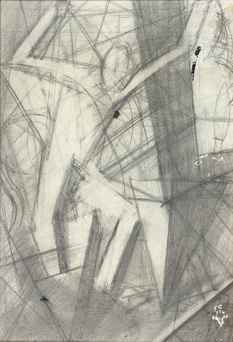 Sassari, 1885 - Milano, 1961 Composizione futurista, 1916-17 Matita e carboncino su carta intelata, 32 x 22 cm Timbro al retro della Galleria Arco Farnese di Roma, esposizione del 1985