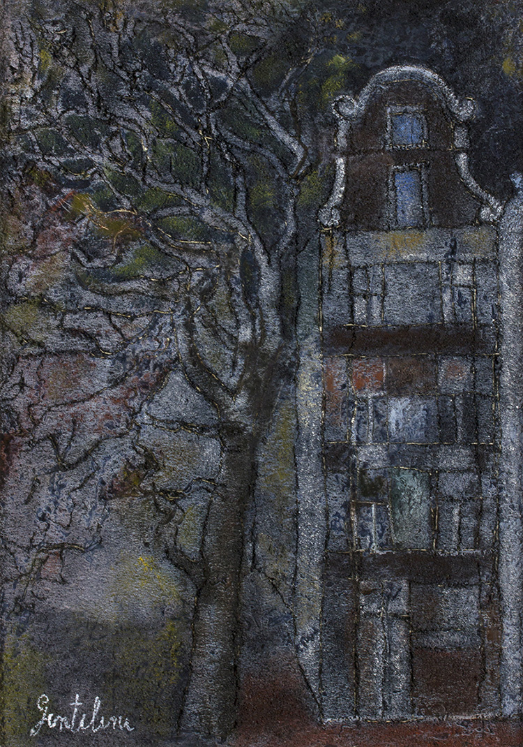 Lotto 285 | FRANCO GENTILINIFaenza, 1909 - Roma, 1981 Casa nella notte Olio e sabbia su...