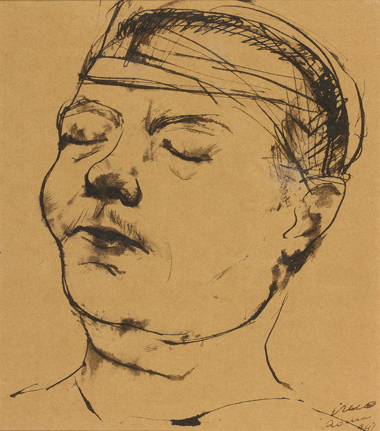 Catania, 1913 - Roma, 1995 Ritratto maschile, 1947 China su carta marrone, 24 x 21,5 cm Firma, luogo e data in basso a destra: Greco, Roma 1947