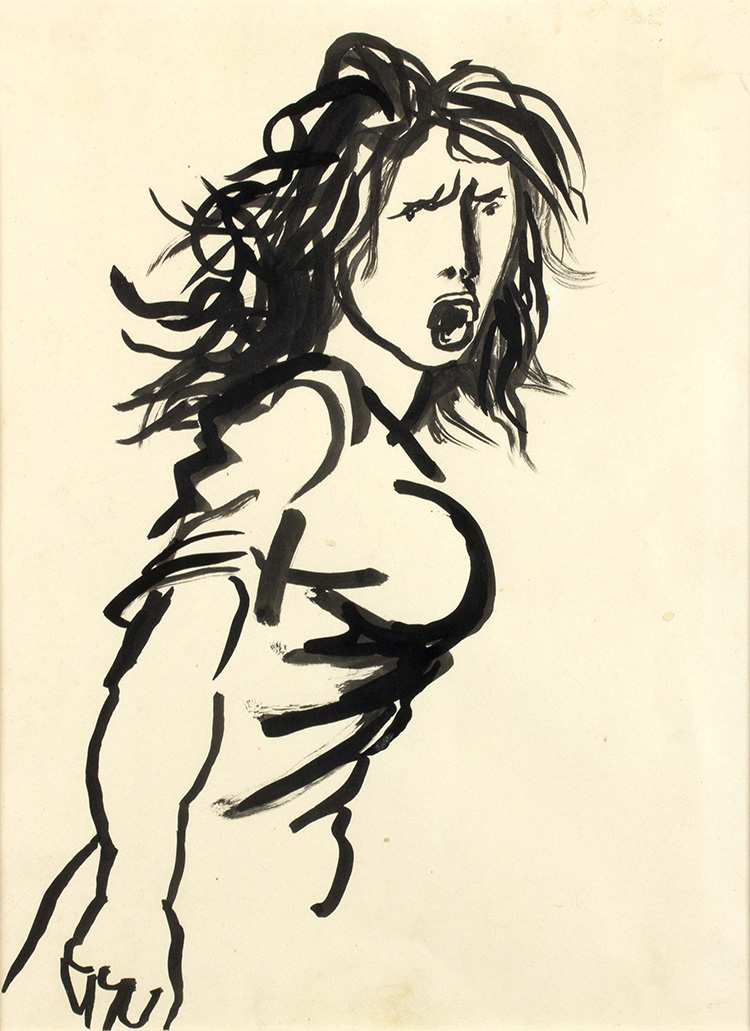 Bagheria, 1911 - Roma, 1987 Ragazza che grida (La protesta) Inchiostro su carta, 39,5 x 29 cm circa