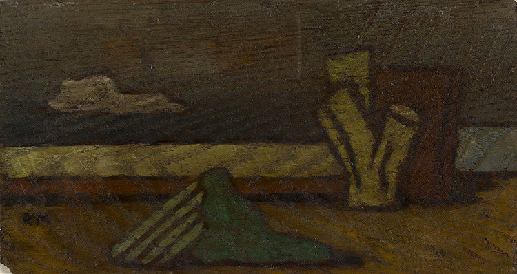 Firenze, 1898 - 1976 Scena metafisica, 1930 Olio su tavola, 12,3 x 23,3 cm Firma in basso a sinistra: RAM