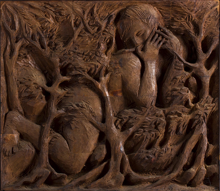 Grottammare, 1913 - Roma, 1987 Figura mitologica silvestre, 1956 Bassorilievo in legno, 73,7 x 83,7 x 12,3 cm Firma, luogo e data in basso a destra: Pericle Fazzini, Roma 1956