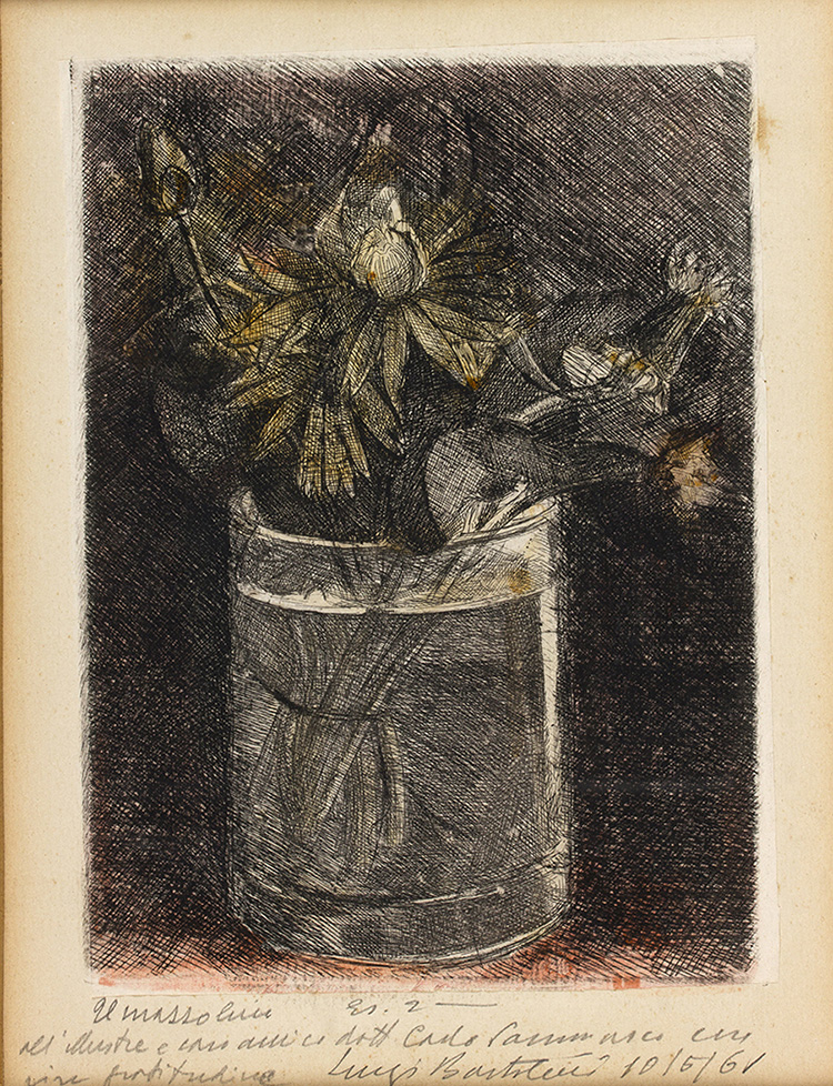 Cupramontana, 1892 - Roma, 1963 Il mazzolino Incisione su carta, 17 x 13 cm circa Titolo, n° esemplare, dedica, firma e data in basso: Il mazzolino, es. 2, “All’illustre e caro amico Dott. Carlo, con vera gratitudine”, Luigi Bartolini, 10/5/61