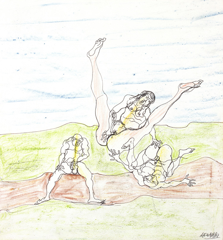Quarrata, 1911 - Savona, 1998 Figure China e pastelli su carta, 39 x 36,5 cm Firmato in basso a destra: A. FABBRI