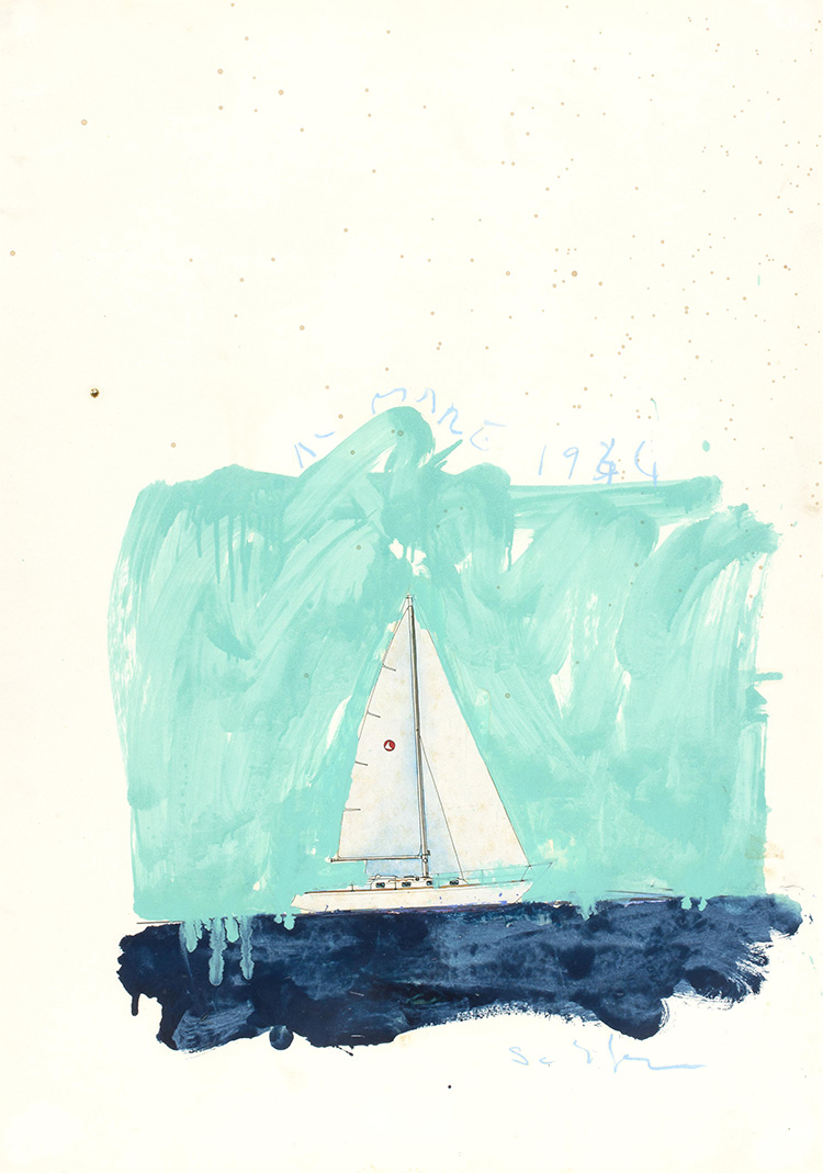 Homs (Libia), 1934 - Roma, 1998 Al mare 1944, 1979-80 Tecnica mista su carta, 100 x 70 cm Firma in basso a destra: Schifano