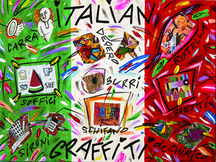 BRUNO DONZELLINapoli, 1941 Italian Graffiti Olio e collage su tela, 50 x 70...